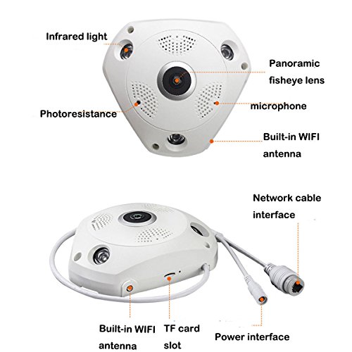 -. Feature : 【ixaer PANORAMIC IP CAMERA】360 degree 1.44mm lens panoramic IP camera would make 100㎡ under surveillance without blind spots. Keeps your home and work office Safe and control. Share camera videos to your friends or family on smartphones, PC, Tablet and more. Omni-directional IR Illumination. / 【EASY TO OPERATE AND REMOTE CONTROLS】Set up easily about 5 minutes. Bulit-in WiFi device. Once powered, the camera will connect to your router directly without Ethernet line. You can remote multi cameras simultaneously and adjust angle to monitor every corner at APP by smartphone. / 【WIDE RANGE APPLICATION】Household using, Pet monitoring, business monitoring, baby recording, elderly caring, etc. The purpose of Panoramic camera is to business monitoring, Family. / 【CARING, SECURITY GUARDING】Intelligent tracking, Time with the beat, Full name record abnormal dynamic, Two-way voice real-time communication, Record baby growth, Guarding your home security. Support SD/TF Card, WiFi, Audio, all function backup in NVR Support different type of Display & Play back in App, CMS, NVR like circular, banding, cylinder, image split. / 【SERVICE & WARRANTY】 180 DAYS WARRANTY. If you have any issues in the future contact us and we will aim to respond within 24 hours. We pride ourselves on our customers' satisfaction.