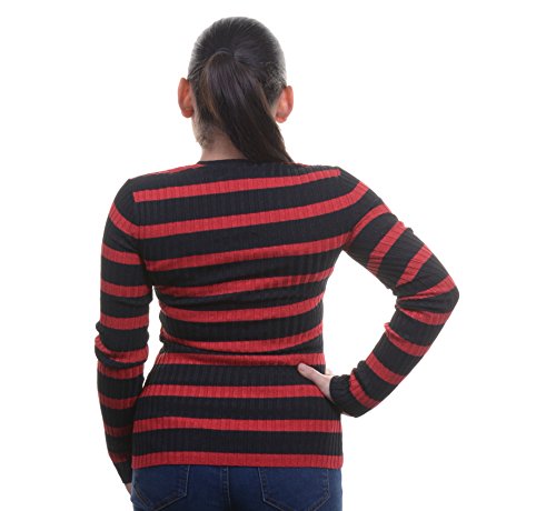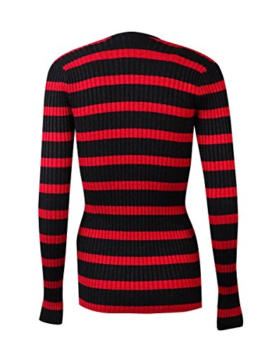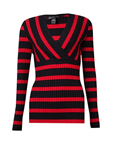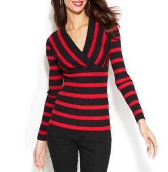 Product DescriptionSweater features no lining, surplice V-neckline, long sleeves, metallic striped ribbed rayon blend fabric, and pullover style.0