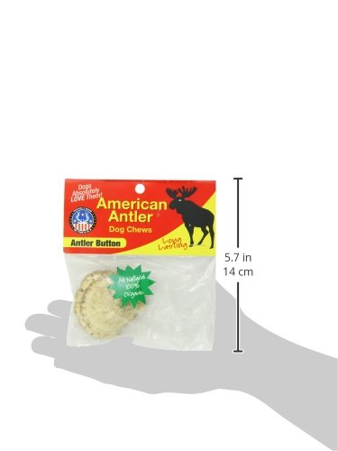 -. Binding : Misc. -. Brand : American Antler Dog Chews -. EAN : 0091037059123 -. Feature : All-Natural; Long Lasting / Renewable sourced product / Promotes dental health / American Antler Dog Chews; Antler Button -. Label : American Antler Dog Chews -. LegalDisclaimer : Please monitor your pet while this product is enjoyed -. Manufacturer : American Antler Dog Chews -. Model : 091037059123 -. MPN : 091037059123 -. PackageQuantity : 1 -. PartNumber : 091037059123 -. ProductGroup : Pet Products -. ProductTypeName : PET_SUPPLIES -. Publisher : American Antler Dog Chews -. Size : 3" diameter approximately -. Studio : American Antler Dog Chews -. Title : American Antler Dog Chews, Antler Button -. UPC : 091037059123