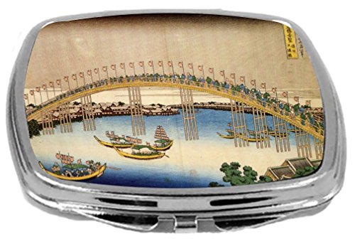 Rikki Knight Compact Mirror, Katsushika Hokusai Art Tenma Bridge, 3 Ounce