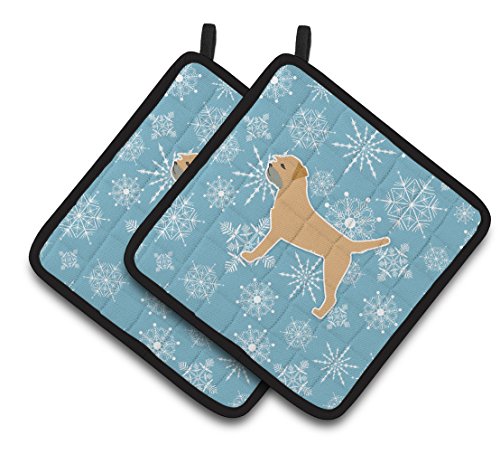 Caroline's Treasures Winter Snowflake Border Terrier Pair of Pot Holders BB3489PTHD, 7.5HX7.5W, Multicolor