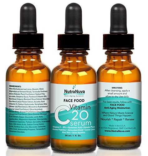 FACE FOOD - BEST ANTI AGING VITAMIN C 20 SERUM + HYALURONIC ACID WITH POTENT ACTIVES TO CREATE COLLAGEN, FIGHT SKIN AGING, REPAIR SUN DAMAGE, AGE SPOTS, DARK CIRCLES, EYE WRINKLES & FINE LINES