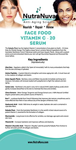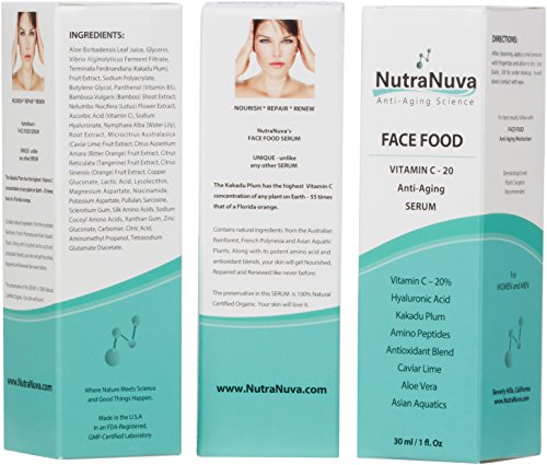 NOURISH * REPAIR * RENEW - Your Skin Becomes NOURISHED allowing it to be Naturally REPAIRED while Causing Cellular RENEWAL. -- Visibly Reduces the Appearance of Wrinkles and Smooths the Surface of the Skin. Potent Antioxidants to Prevent Premature Aging. Ultra-Silky Smooth and Fast Absorbing. ALWAYS FOLLOW ANY SERUM WITH YOUR FAVORITE MOISTURIZER. For Best Results follow with FACE FOOD Anti Aging Moisturizer, also available here on Amazon -- Frequently Bought Together. For Men Too