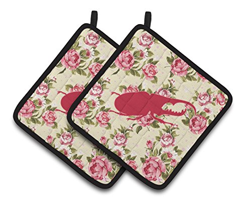 Caroline's Treasures Beetle Shabby Chic Yellow Roses Pair of Pot Holders BB1056-RS-YW-PTHD, 7.5HX7.5W, Multicolor