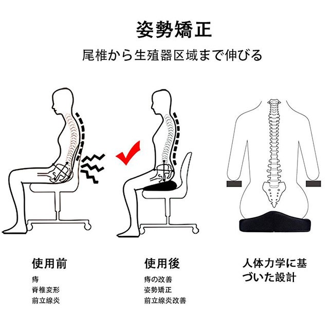 尾てい骨の負担を軽減でき、腰痛を和らげることができる。
