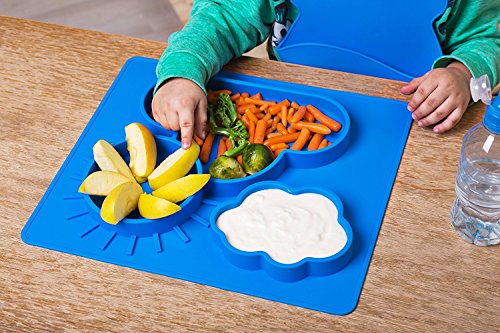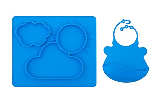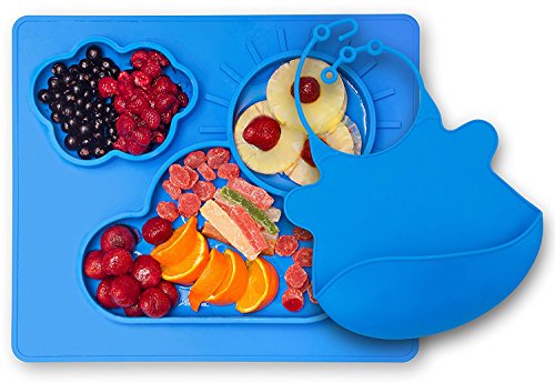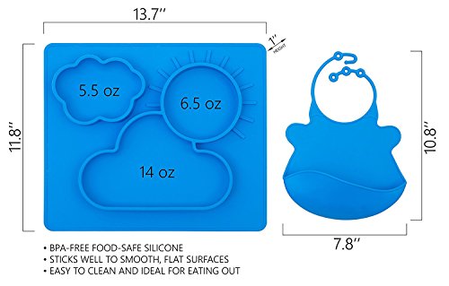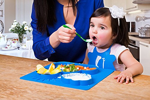 -. Title : Kenley Silicone Suction Placemat with Divided Food Plate for Toddlers & Kids - Non-slip Baby Weaning Tray Mat with Feeding Bowl - FREE Matching Bib