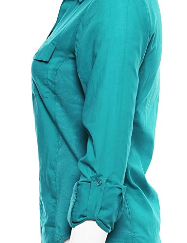 -. Title : MBE Women's Basic Long Sleeve & 3/4 Sleeve Button Up Dress Shirt w/ Side Ribbing