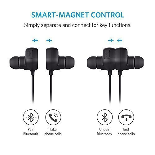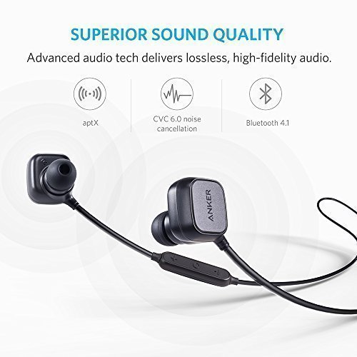 High-Fidelity Sound: Enjoy crisp_ rich music with aptX lossless sound and Bluetooth 4.1 technologies. CVC 6.0 noise cancellation almost eliminates background noise to ensure high-quality audio when making calls. Smart-Magnet Control: Gives you convenient and powerful control to pair with your device_ play or pause music_ and take calls by simply connecting or separating the earbuds. Comfortable Fit: Includes four sizes of eartips and three sizes of In-Ear Hooks to ensure a relaxed but secure fit for you. Comfortable_ tangle-free neckband design. Incredible Playtime: 8-hour playtime on a 1.5-hour charge_ allowing you to enjoy music on-the-go all week. (playtime varies according to volume level and audio content). What You Get: Anker SoundBuds Sport IE20 Bluetooth Headphones_ Micro USB charging cable_ noise-isolating EarTips (S / M / L / XL)_ semi-open EarTips (S / M)_ 3 pairs In-Ear Hooks_ FitClip_ travel pouch_ welcome guide_ our worry-free 18-month warranty and friendly customer service.