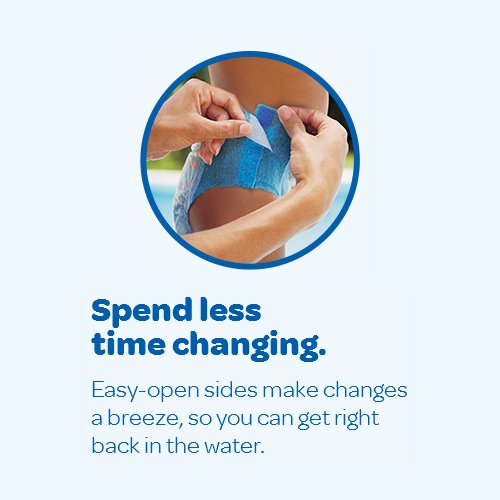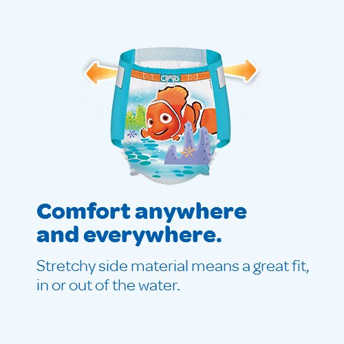 - Feature : Easy open sides make changes a breeze / Unique absorbent material won't swell in water. Special leak guards help protect. / Stretchy sides for a comfortable fit / Back label helps moms and kids tell back from front / Fits over 32 lbs. Everyone's favorite Disney and Disney/Pixar characters.