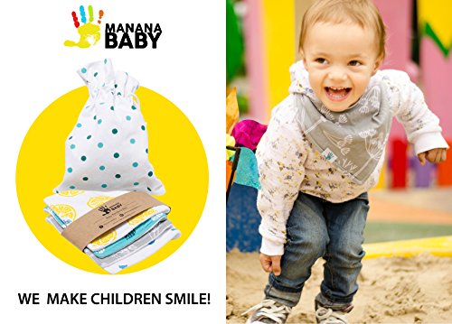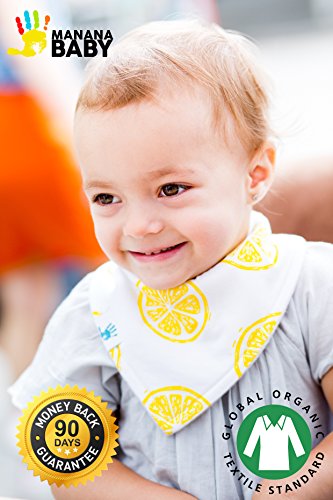 -. Feature : SUPERIOR QUALITY & COMFORT: Give your cutie the comfort he/she deserve with our bandana bibs. Our high-quality bibdanas are well-stitched on edges that prevent fraying. Each bib features 2 nickel-free snaps, making our drool bibs the perfect choice for your baby's sensitive skin. Why use cheap plastic bibs or Velcro that can cause scratches and spoil clothes? Our baby scarf bibs are lightweight and comfortable, perfect for everyday use for babies from 3 to 24 months. / ADORABLE DESIGNS: Do you love dressing up your baby, and wish of a bib that complements their cute little outfit? Regular plastic bibs look cheap and ruin an otherwise adorable look. But with our cute cotton baby bibs, you'll never worry about this again. Manana Baby drool bibs are beautifully designed to complement any outfit so that your baby will be dribbling in style. Your baby will look cool and stylish, right down to the bib. / HIGHLY ABSORBENT ORGANIC COTTONS: Made of 100% organic cotton on the front and with Global Organic Textile Standard (GOTS) certification, our stylish baby bibs will keep your little one dry and safe from skin rashes and irritation. The back side of our drool bibs is made from super soft water-resistant brushed fleece for extra absorbency and comfort! And with the high quality of craftsmanship, our unisex bandana bibs are safe for the washing machine. / CUTE BABY GIFT SET BAG: Mañana Baby's cute bandana bibs are beautifully packed in a stylish cotton bag that can be reused to carry bibs, burp clothes, diapers, pacifiers and more. This handy makes a great baby shower gift for any newborn, or give these trendy cotton bibs as a perfect holiday or birthday present. / SATISFACTION GUARANTEED: Mañana Baby drool bibs come with a 90-day 100% Money-Back Guarantee. If you are not completely satisfied, contact us and we will refund your money, no questions asked! With this added peace of mind, add our unique bibs to your shopping cart now. This is a limited-time offer.