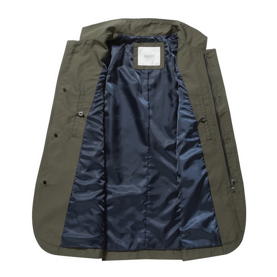 - 버튼 인 풀지퍼 플라켓 디자인으로 단정함.
