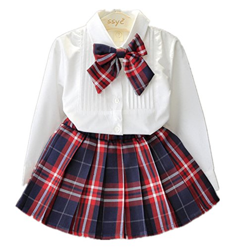 -. Title : MissとMr キッズ 女の子 長袖 Tシャツ+ チェック柄スカート ガールズ 上下セット 2点セット フォーマル ワンピース 学園風 結婚式 入学式 卒業式 入園式 成人式 学園祭