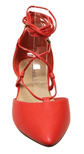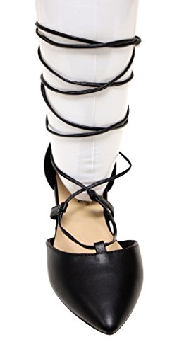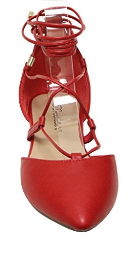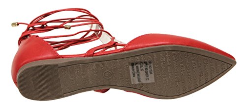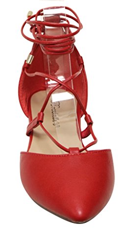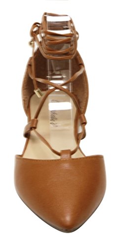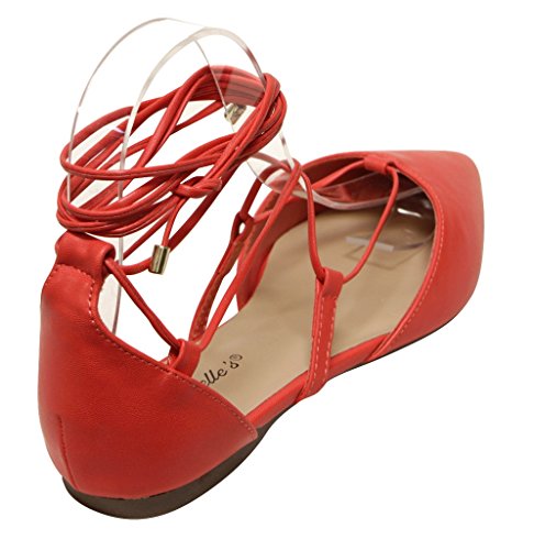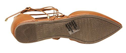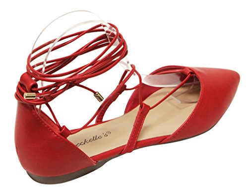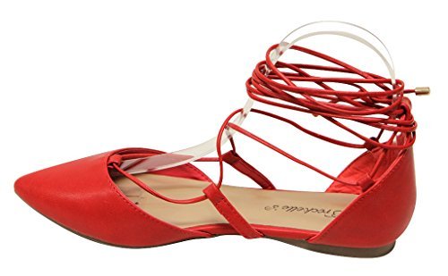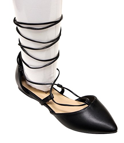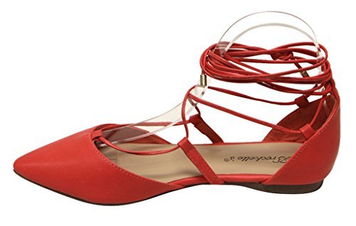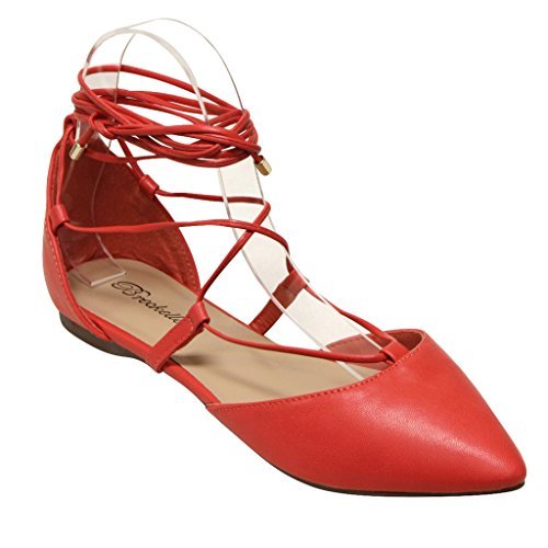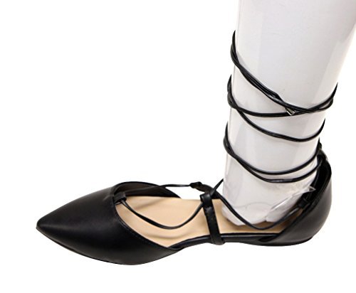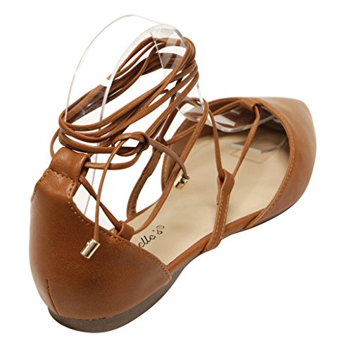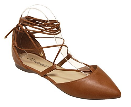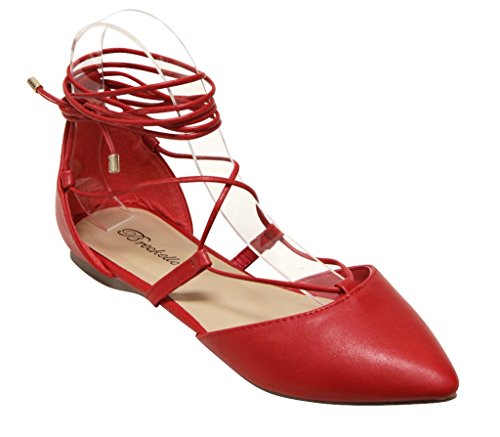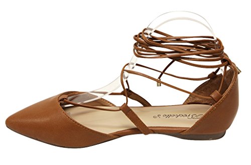 Breckelles Daisy-72 women's d'orsay Almond poited Toe Gilly Tie Ankle Wrap Flats PU