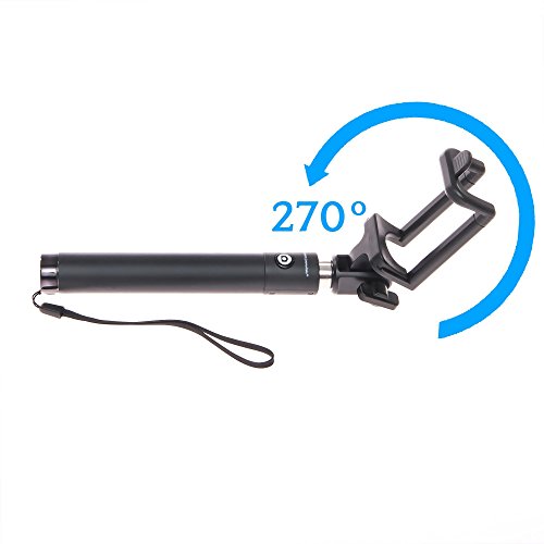 Pocket or Purse Size - Smallest on the market. Extendable selfie pole stretches from 7.5 to 34 inches. All one piece so no losing parts. Adjustable head allows for 270 degrees to gain the best angle to take a selfie, group & above-crowd aerial shots.