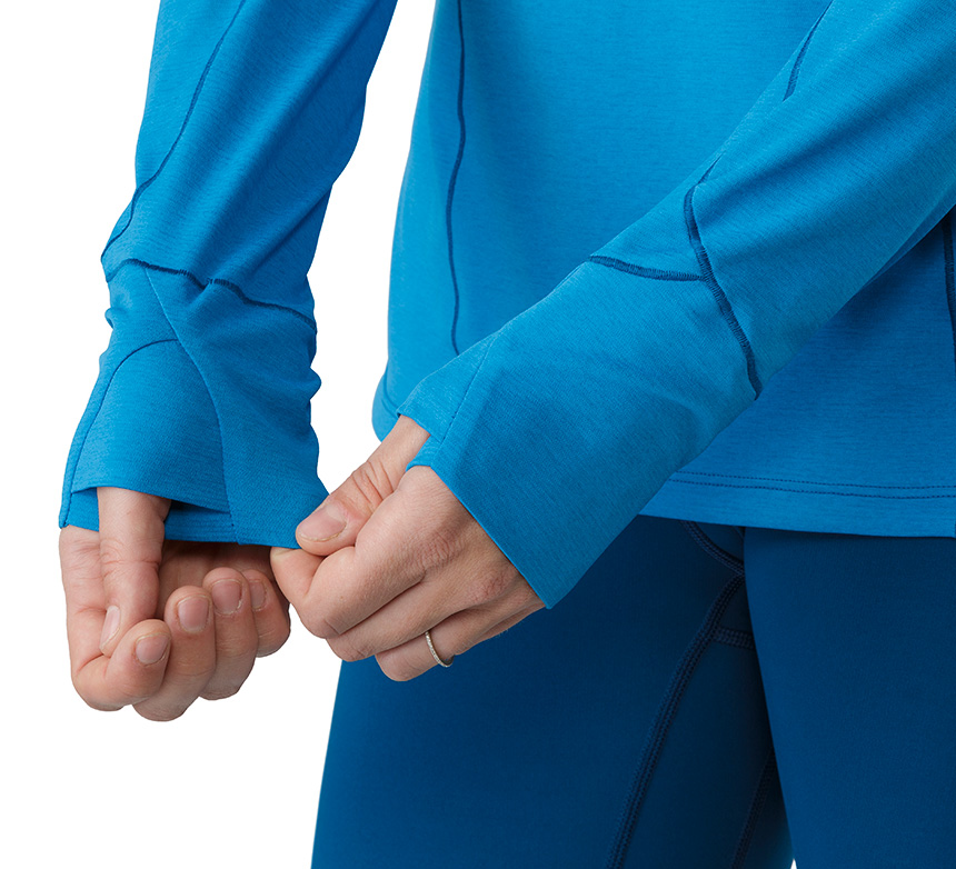 · 소맷단에 엄지손가락을 걸 수 있어 활동 중 소매가 밀려 올라가지 않도록 하며 손등을 보호해주고 찬바람의 유입을 차단.