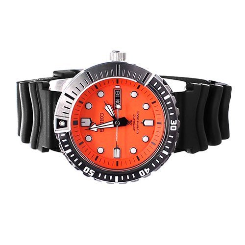 -. Title : Seiko SRP589 Automatic Orange Dial Black Rubber Band Prospex Mens Diver Watch