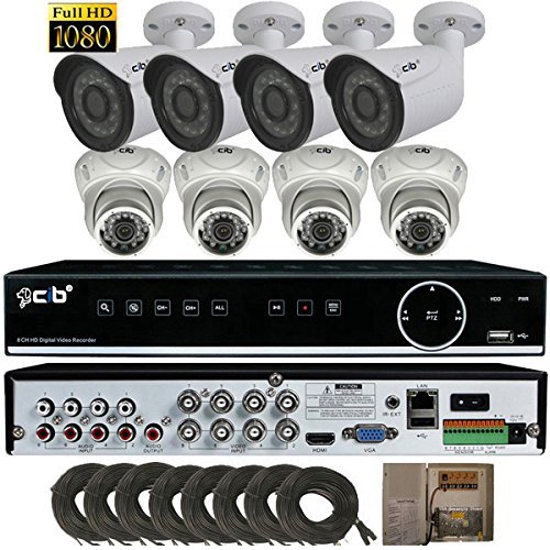Complete DIY System. 8 Full HD 1920TVL 1080P 2.1Megapixel High Resolution Day/Night Vandal 4xBullet and 4xDome Cameras. Advanced IR Cut Filter can capture up to 130ft in day timer and 80ft in complete darkness. Heavy-duty metal indoor/outdoor weatherproof and powerful night vision. 8X65FT Full HD Video Cable with power wire. 8CH Power Supply.