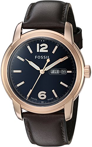 -. Title : Fossil FSW4003 Swiss Made Day/Date Leather Watch - Brown
