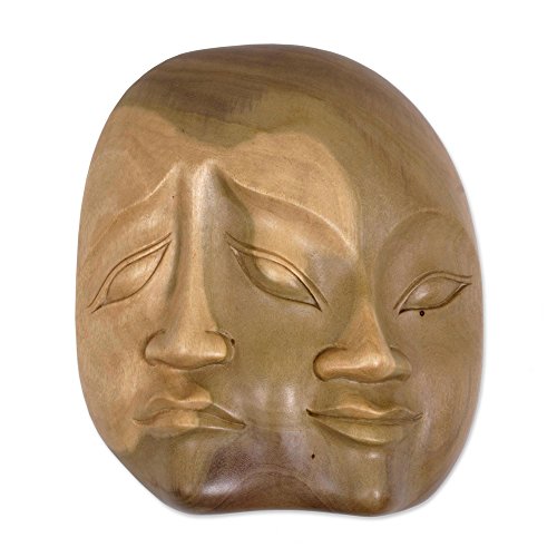 NOVICA Decorative Modern Hibiscus Wood Mask, Brown, 'Two Dimensions'