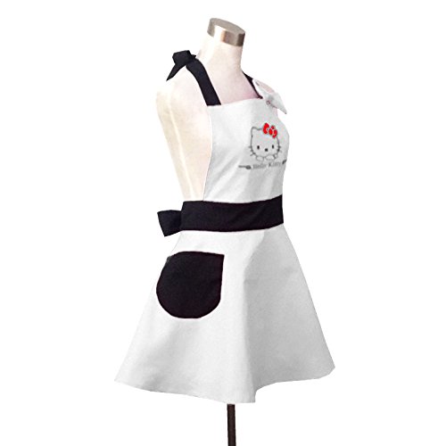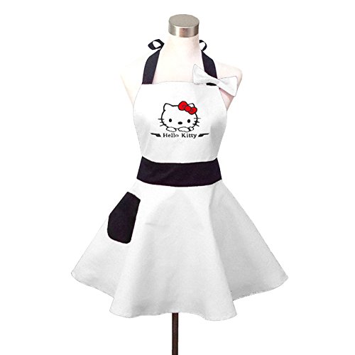 Lovely Hello Kitty White Retro Kitchen Aprons for Woman Girl Cotton Cooking Salon Pinafore Vintage Apron Dress