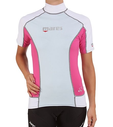 Studio : Mares Publisher : Mares Binding : Misc. Product Description Mares Womens Rash Guard Long Sleeve She Dives Ideal as undersuit or by itself for superior UV protection FEATURES UV protection 50 Cool lightweight material Flat seam construction for comfort COLORS: Pink or Blue Fog Characterized by the Mares Trilastic look, the rash guard is built with a material that provides UV protection of 50 . The seams, sewn with flatlock stitching, won t leave marks on your skin. Perfect to wear underneath your suit and ideal for all kinds of watersports. 0
