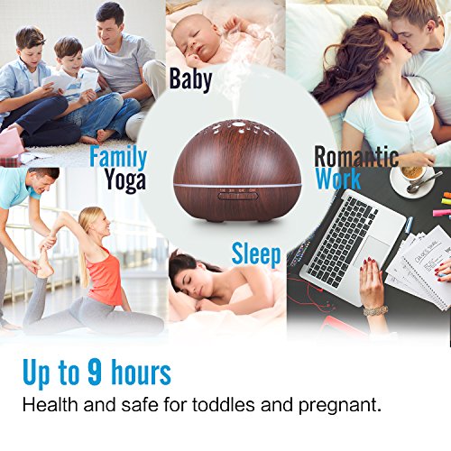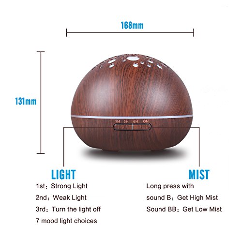 [Large Capacity] This aroma diffuser hold up to 300 mL to cover 10-30 square meters up to 16 hours . It will run 4 hours on one tank of water.