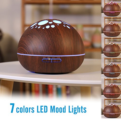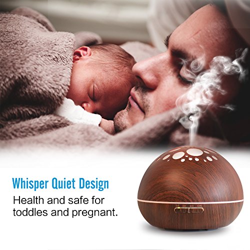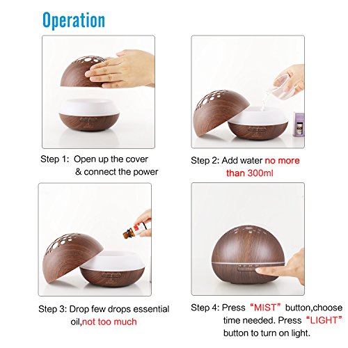 [3 in 1 Function] This Aroma Diffuser is Ultrasonic which will be whisper-quiet when used so that it will create a soft environment for good night’s sleep and pleasant relaxation;The LED lights rotate in 7 soothing colors and each color is adjustable between bright and dim,which can be used as a night light;With Wood Grain looking similar to a acorn it can be a modern and fantastic decoration for your home.