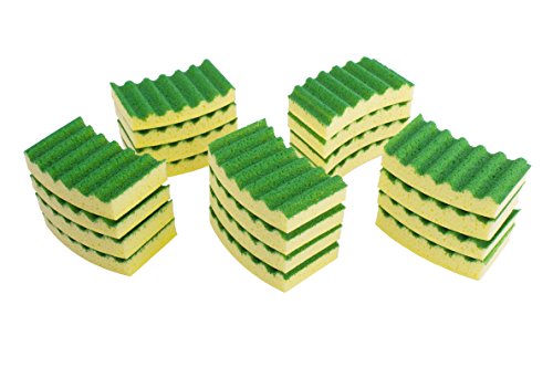 LTWHOME Yellow and Green Multi-Purpose Scrubber Sponges 4.33" x 2.48" x 0.78", No Scratch, Easy-rinse (Pack of 20)