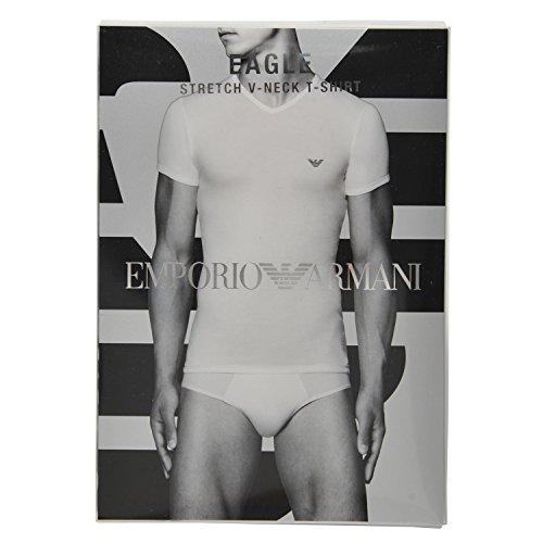 Emporio Armani Men's Eagle V-Neck Tee, White, X-Large