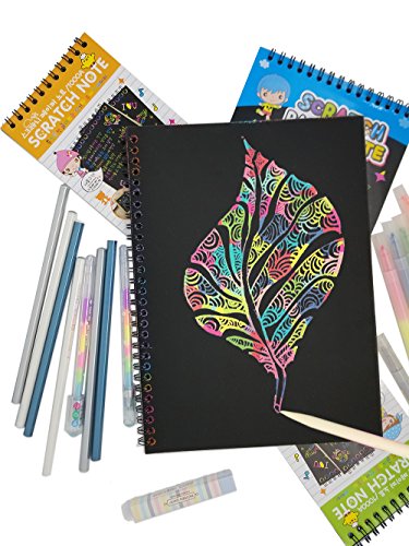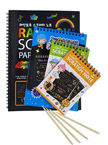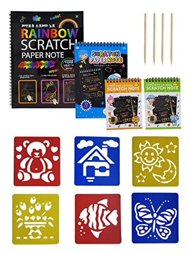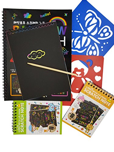 Scratch Paper Drawing Pad-1 Large & 1 Medium & 2 Small-DIY Creative Draw Book with Funny Stencils