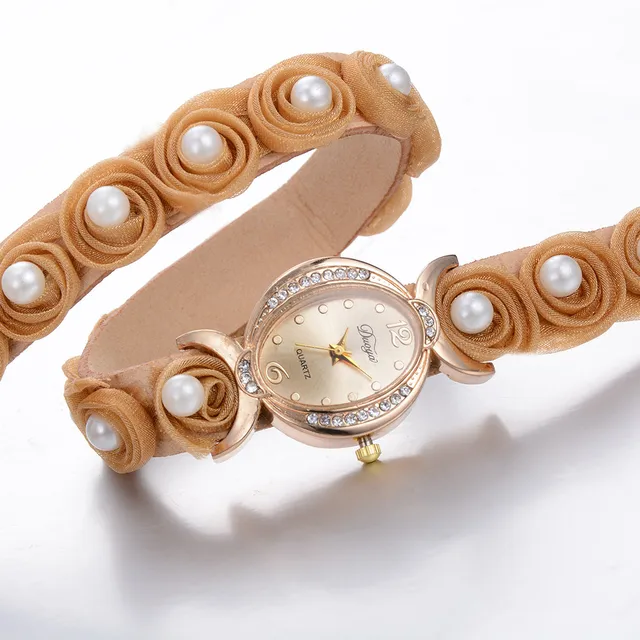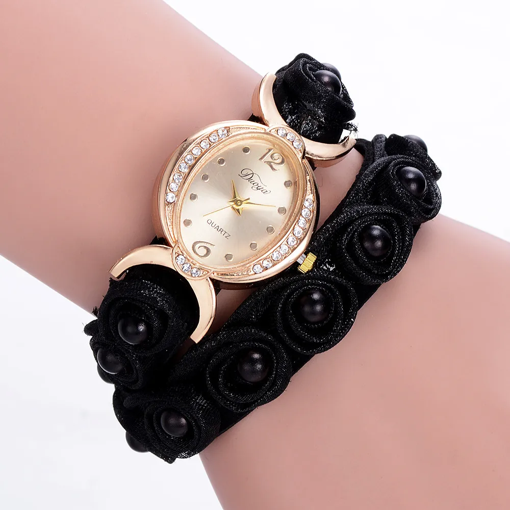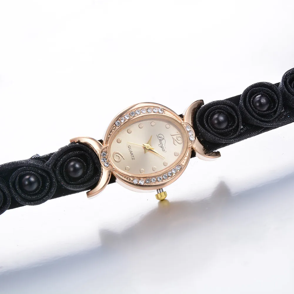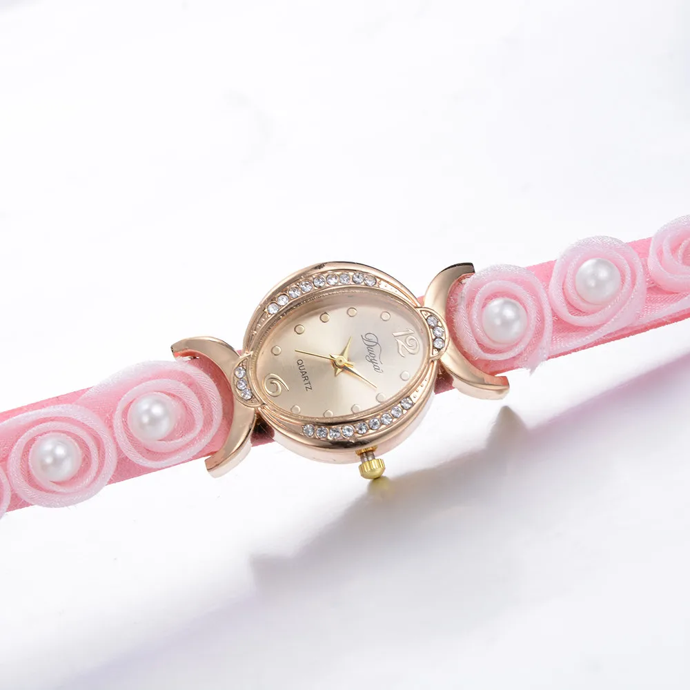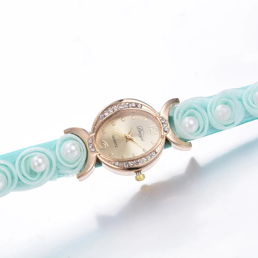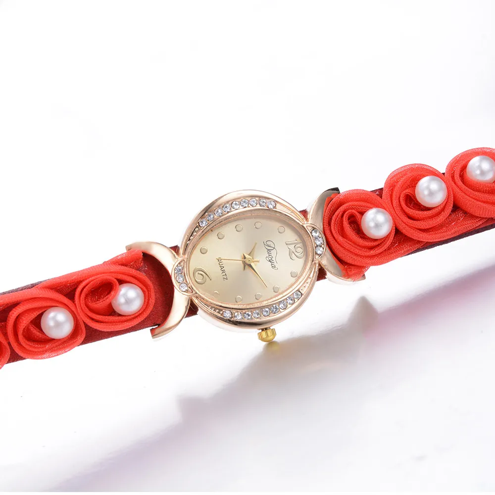 | [해외] Douya 최고 품질의 꽃 여성 손목 럭셔리 브랜드 여성의 팔찌 시계 레이스 인쇄 가죽 시계 Relogios Femininos |