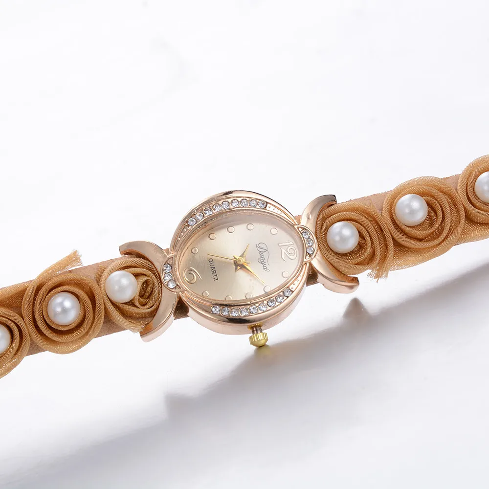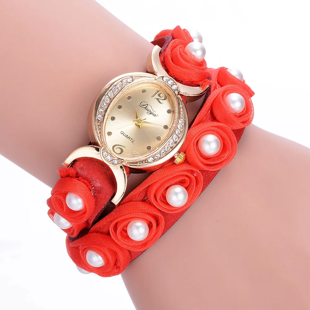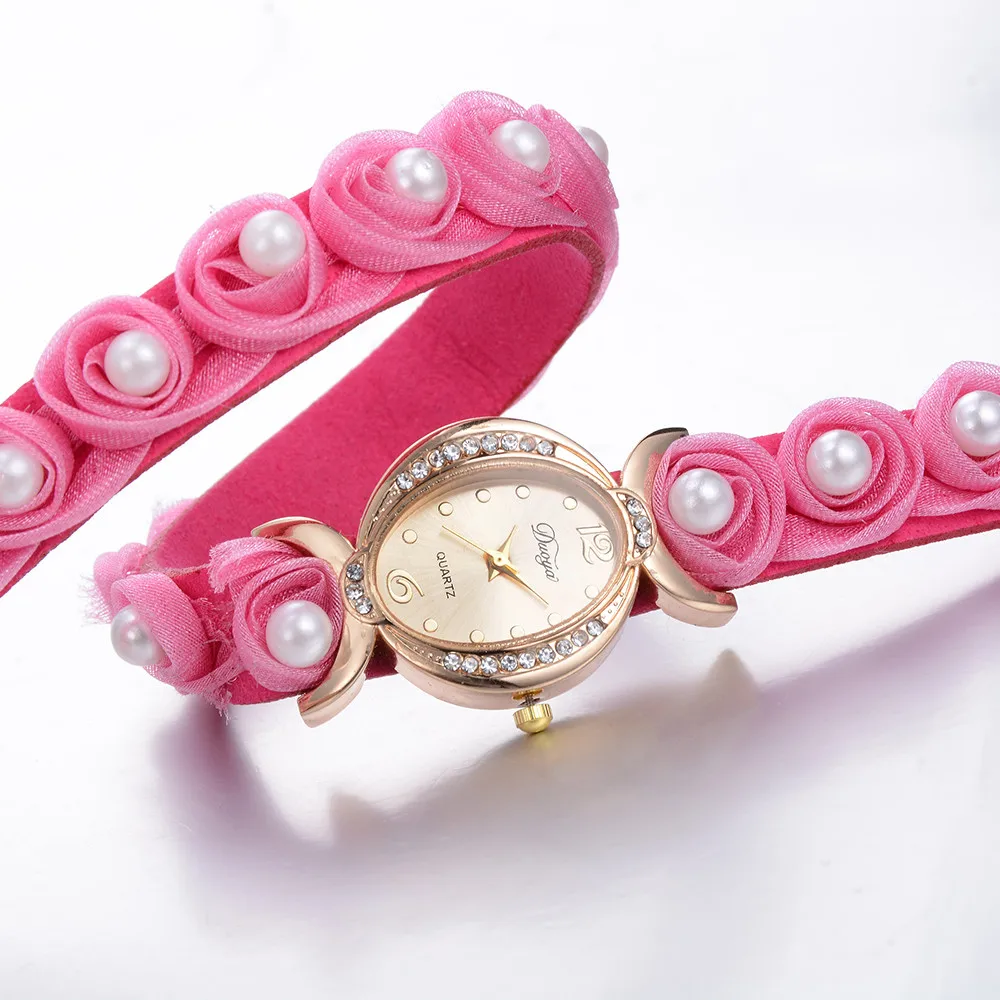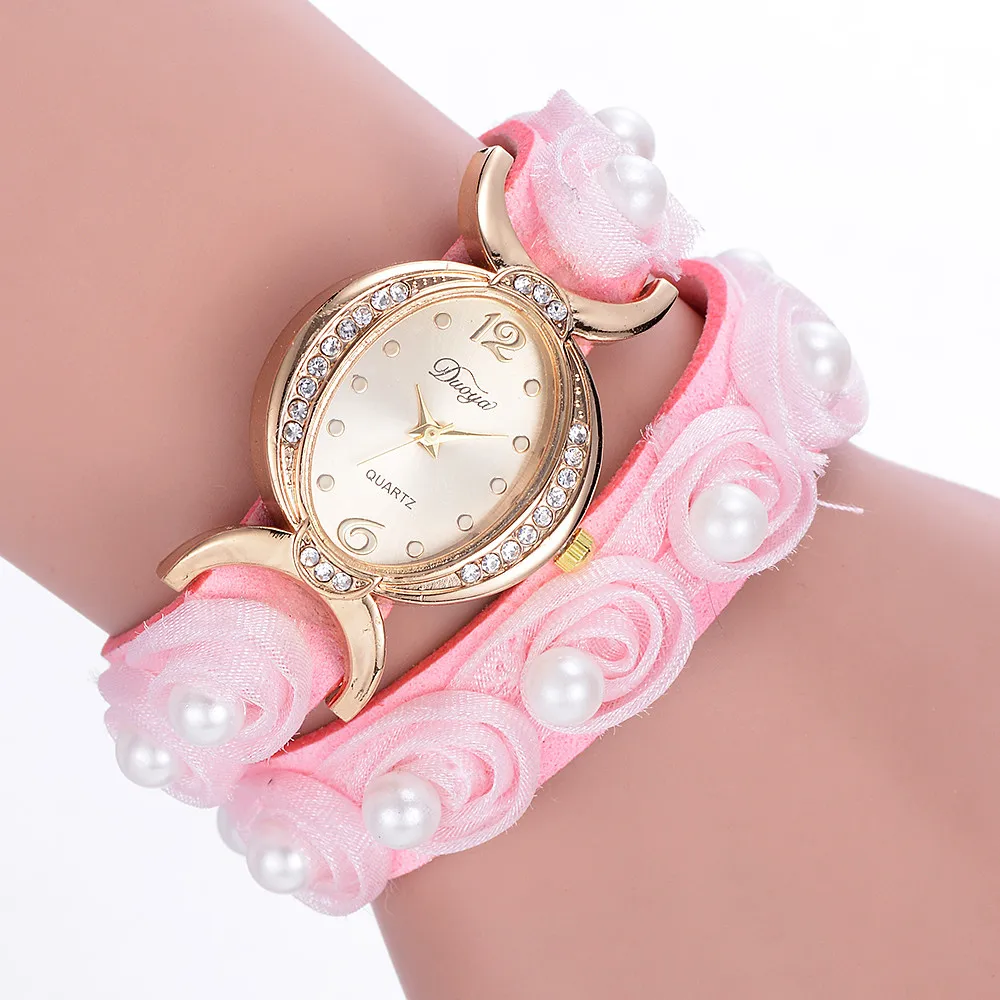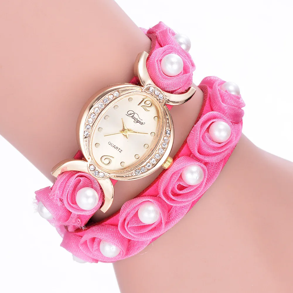 | [해외] Douya 최고 품질의 꽃 여성 손목 럭셔리 브랜드 여성의 팔찌 시계 레이스 인쇄 가죽 시계 Relogios Femininos |