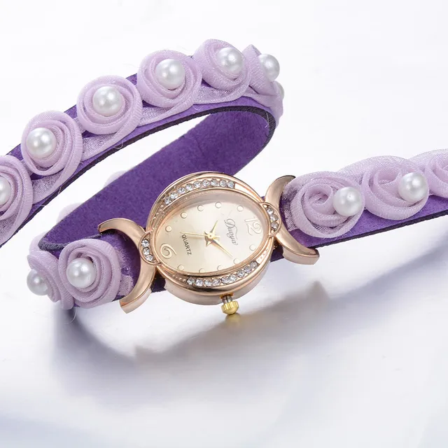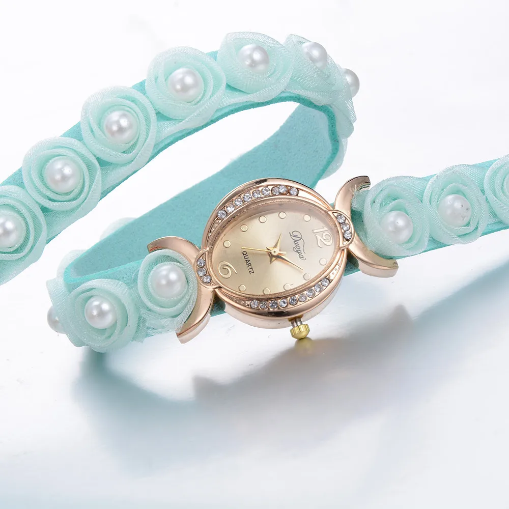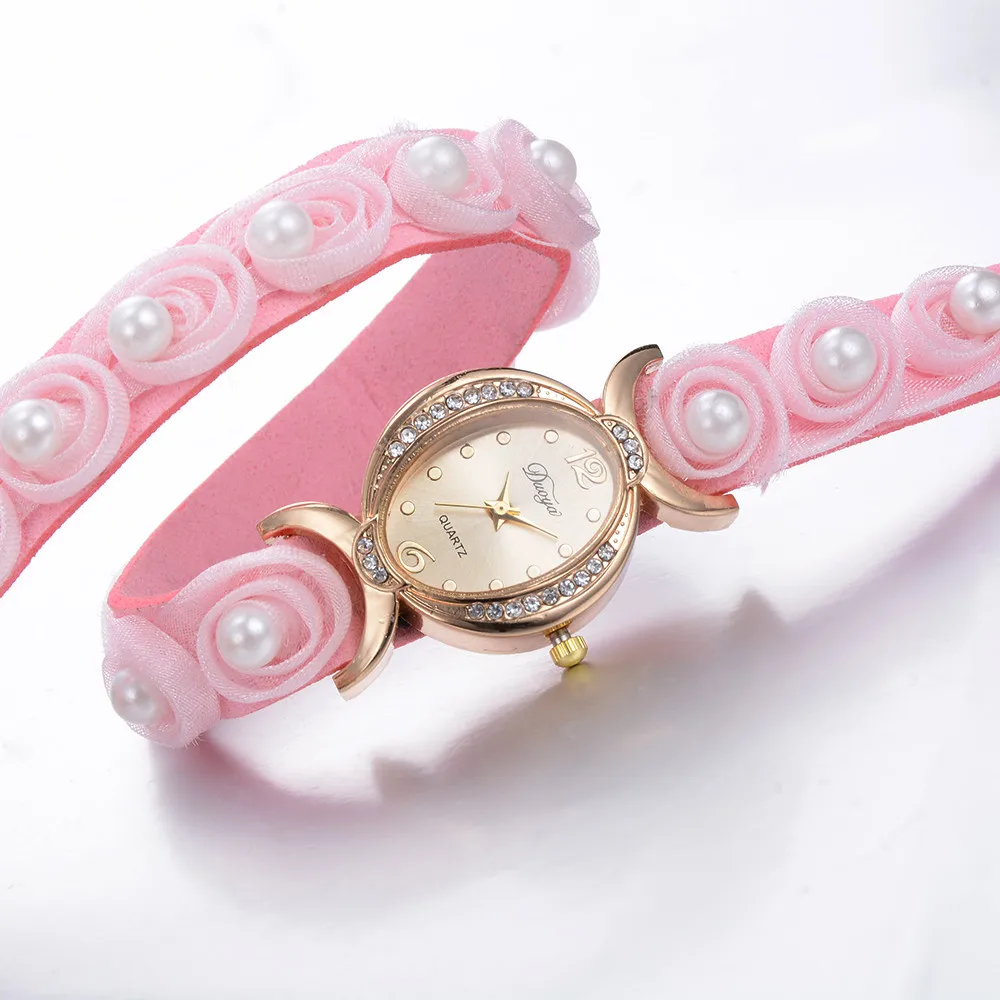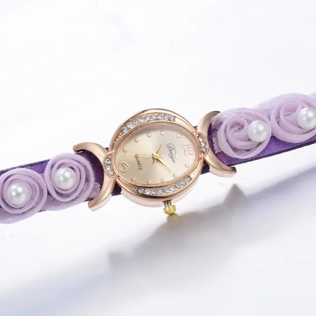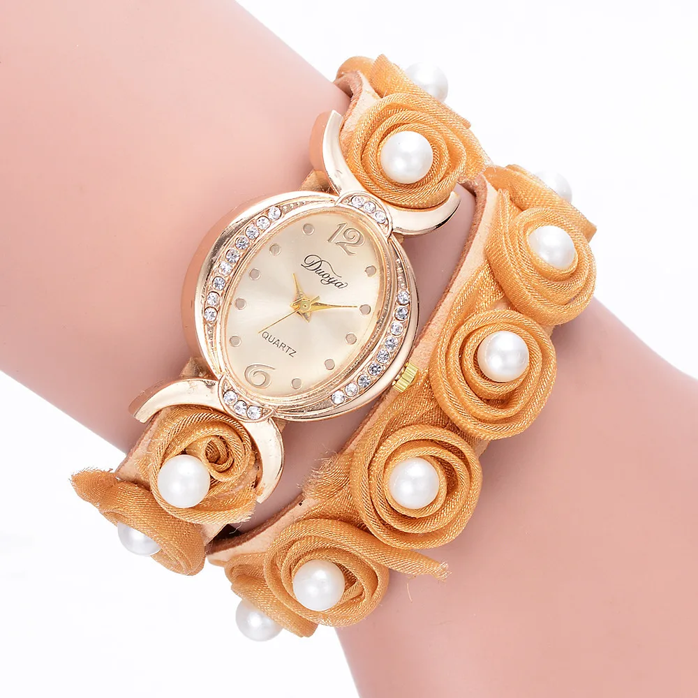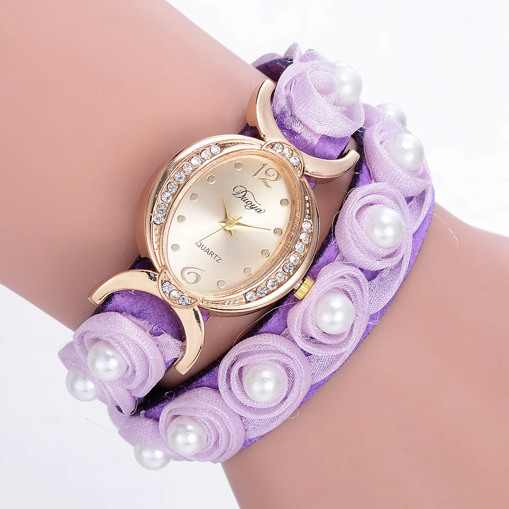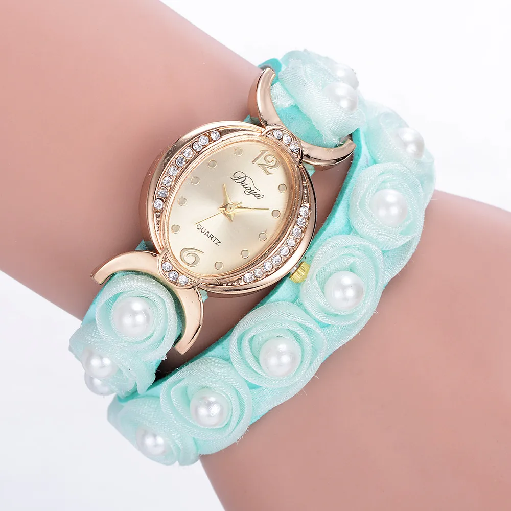 | [해외] Douya 최고 품질의 꽃 여성 손목 럭셔리 브랜드 여성의 팔찌 시계 레이스 인쇄 가죽 시계 Relogios Femininos |