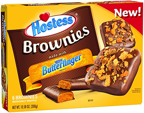 -. Feature : A one-of-a-kind, indulgent treat that brings together decadent Hostess brownies and America's Favorited Crispety, Crunchety and Peanut-Buttery Candy Bar! / Nestlé Butterfinger candy bar pieces generously sP.R.Inkled on top of each brownie / Each decadent brownie is fully enrobed in high quality fudge coating / Available in multipack and single serve. / Each box contains 6 individually wrapped brownies