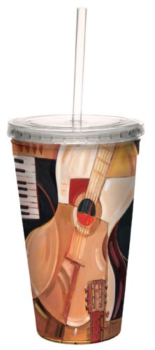 Tree-Free Greetings cc33399 Cool Abstract Guitar by Paul Brent Artful Traveler Double-Walled Cool Cup with Reusable Straw, 16-Ounce, Multicolored