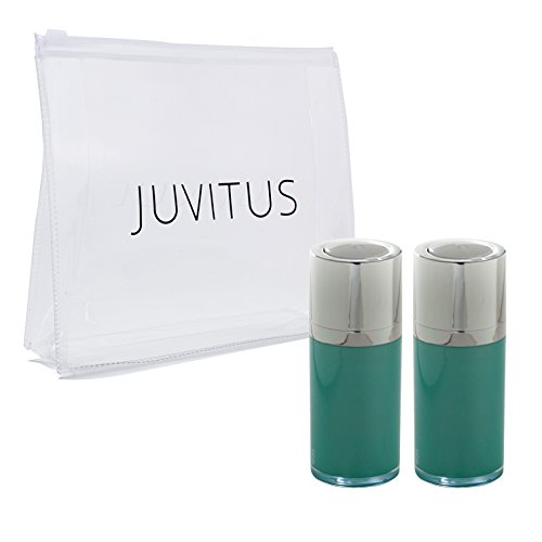 Airless Twist Top Teal Blue Pump Bottle - 15 ml / 0.5 oz (2 Pack) + Clear Travel Bag keeps out bacteria and air changing oxidation from your products - durable and leak proof for home or travel