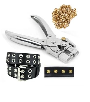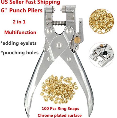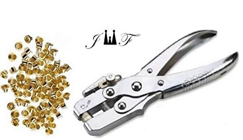 - Heavy Duty ¼ Manual Hole Punch Steel Eyelet Grommet Plier Kit – Used For Leather, Canvas, All Fabrics Men & Women Boys, Girls, Clothes, Shoes, Button, Belts, Bags, Crafts, Card, Paper, Household Pincer Setting Eyelet Tool Eyelet Installation Methods Includes 100 Free Gold grommets-eyelets