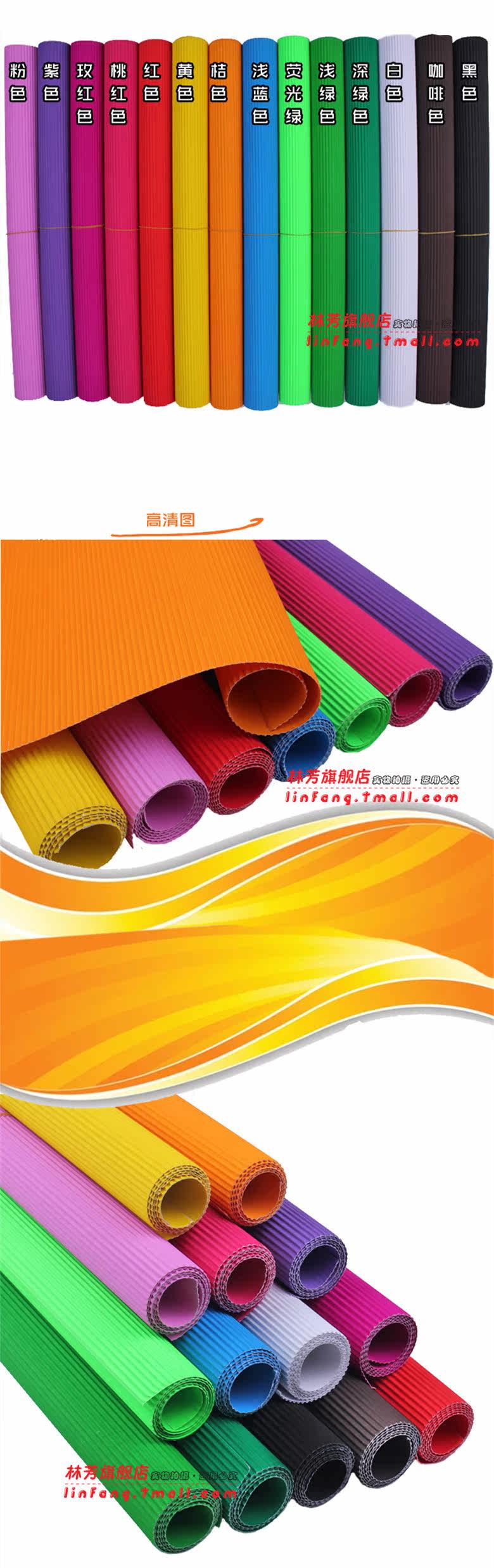 [brand] Lin Fang [name] color corrugated paper [heavy] a single weight of about 60 grams [size] 50cmx70cm or so (error 1-2 cm) The color of the paper is bright, it is suitable for the kindergarten environment layout, children's handmade, stickers, clip art, etc., to stimulate the child's imagination and creativity. It is suitable for all kinds of embossing machine, can press all kinds of beautiful shape, decoration, cards, and so on Because of the light level display and other reasons, the objective existence of color, the color is particularly sensitive to the pro!