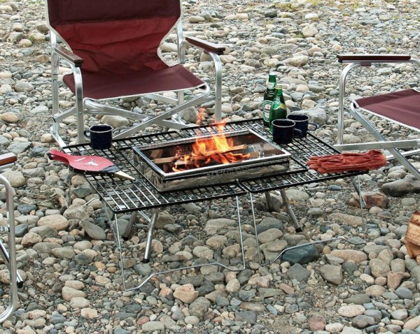 ハイスタイルグリルでバーベキューに。ロースタイルで焚火台としても使える。 |