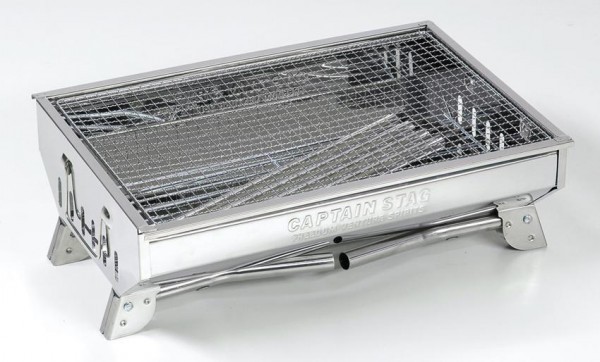 | 素材・材質 | 本体・脚部・ハンドル:ステンレス鋼、バーベキュー網:鉄(クロムめっき)、目皿:鉄(亜鉛めっき) |
