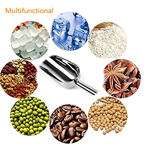 -. Title : 8 Inch Length Ice Scoop with Round Handle Stainless Steel Flour Coffee Bean Sugar Soybean Spice Ice Cube Shovel Scraper