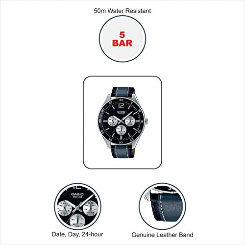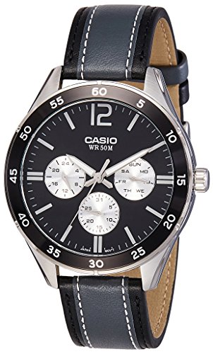 Brand, Seller, or Collection Name:Casio Model number:MTP-E310L-1A1VDF (A1178) Part Number:MTP-E310L-1A1VDF (A1178) Model Year:2016 Item Shape:Round Dial window material type:Mineral Display Type:Analog Case diameter:45 millimeters Band Material:Leather Band width:20 millimeters Band Color:Black Dial color:Black Special features:N/A Movement:Japanese quartz Water resistant depth:50 Meters