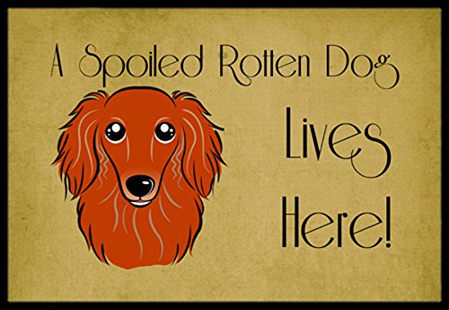 Caroline's Treasures BB1462MAT Longhair Red Dachshund Spoiled Dog Lives Here Indoor or Outdoor Mat, 18 x 27", Multicolor