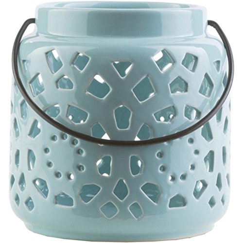 -. Title : 6.5" Madison Links Pastel Blue Ceramic Small Pillar Candle Holder Lantern