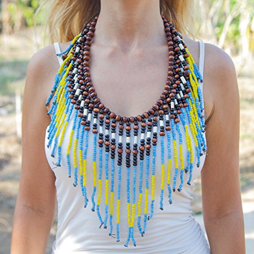-. Brand : Novum Crafts -. ClothingSize : Medium -. Color : yellow, turquoise -. Department : womens -. Feature : Not made by Native Americans, made by Balinese Artisans / Real Bone (taken from buffalos) / Genuine Novum Crafts Product | Produced and sold by Novum Crafts. / All of our products are made by indigenous Balinese artisans. -. ProductGroup : Apparel -. ProductTypeName : ADULT_COSTUME -. Size : Medium -. Title : Novum Crafts | Indian Style Choker | Native American Style Breastplate Necklace -. UPC : 022228604464