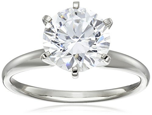 10k White Gold Round-Cut Solitaire with Swarovski Zirconia Ring, Size 6