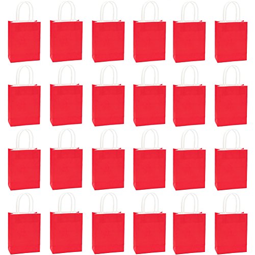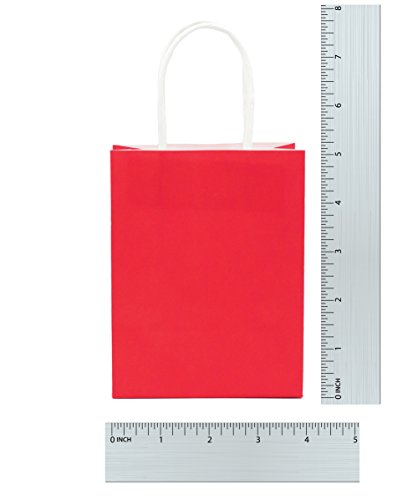 Red Mini 5" Favor Gift Kraft Paper Bags With Handles - Set of 24