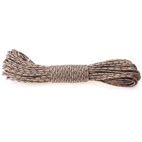 -. Feature : - Polypropylene fiber material, durable enough, safe enough. / - Super tough and ultra versatile parachute cord. / - Multifunctional, great for survival, camping, fishing, load tie down and many other applications. / - Maximum tensile 350 pound.