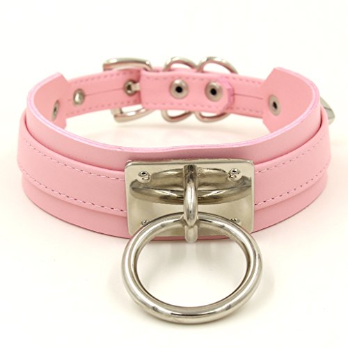 The beautiful choker is made with super quality vegan leather and alloy, centered with a shiny o ring, with a delicate buckle which clasps at the back of the neck.