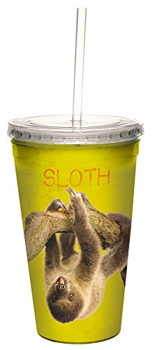 Sloth Double-Walled Cool Travel Travel Cup with Reusable Straw, 16-Ounce - Eric Isselee - Gift for Sloth Lovers - Tree-Free Greetings 35790